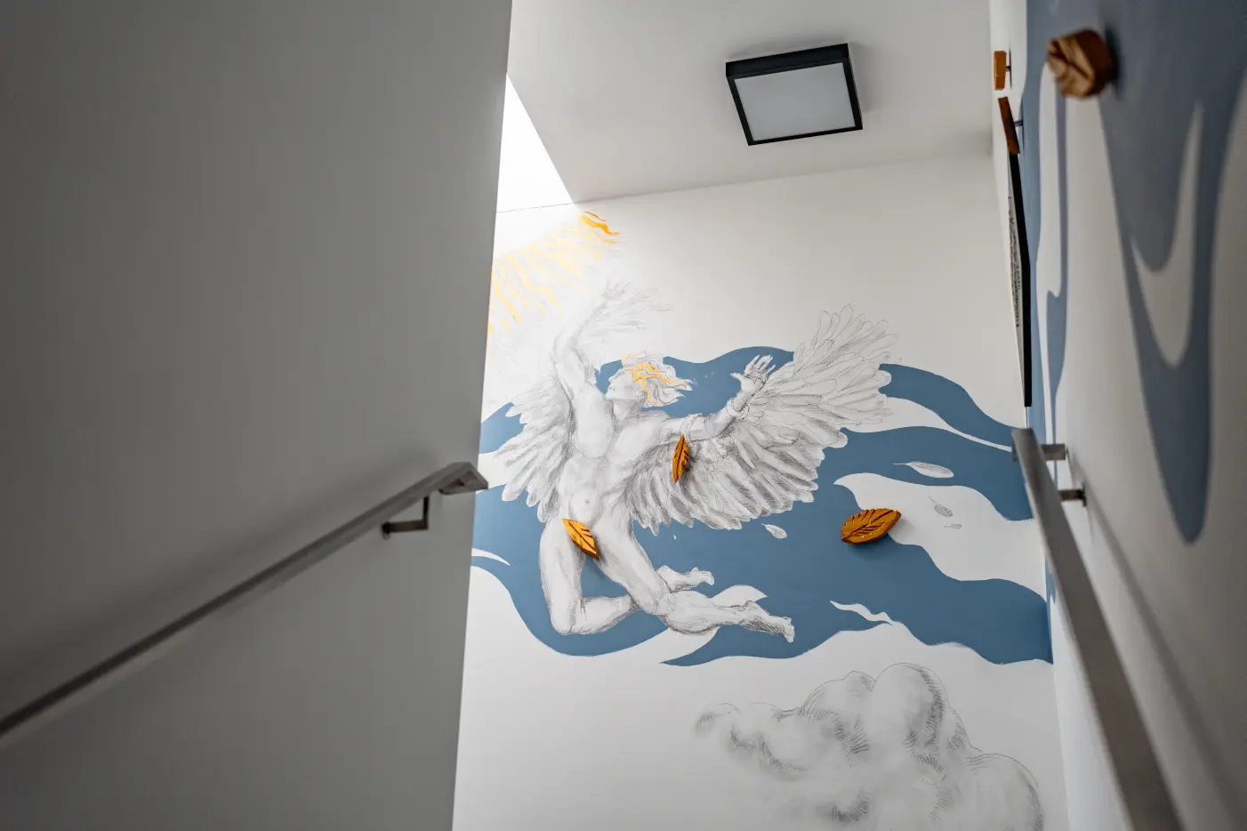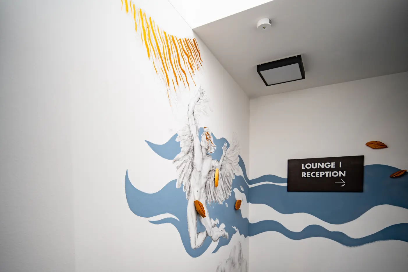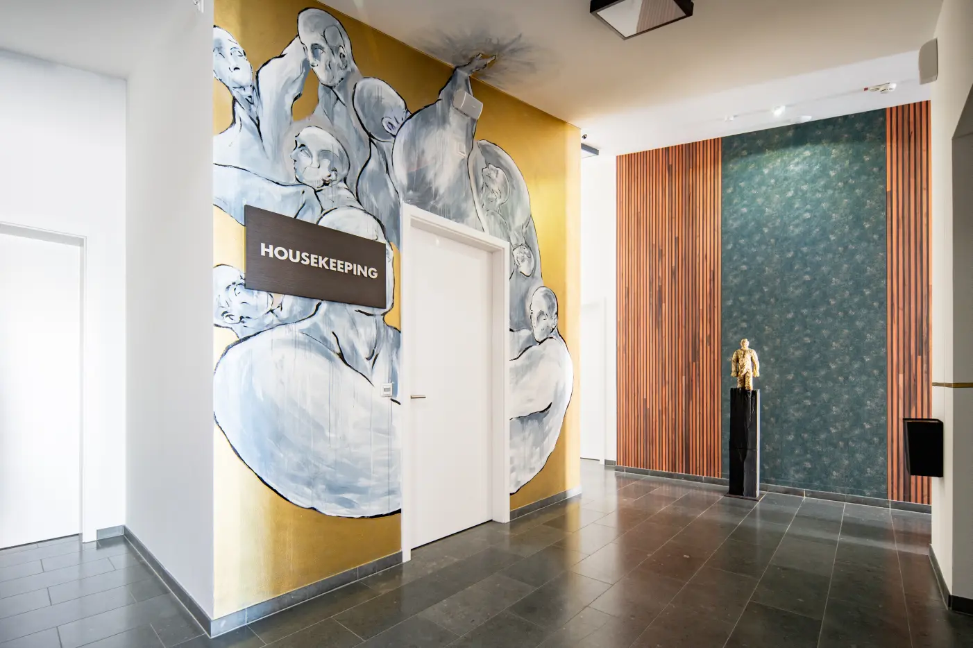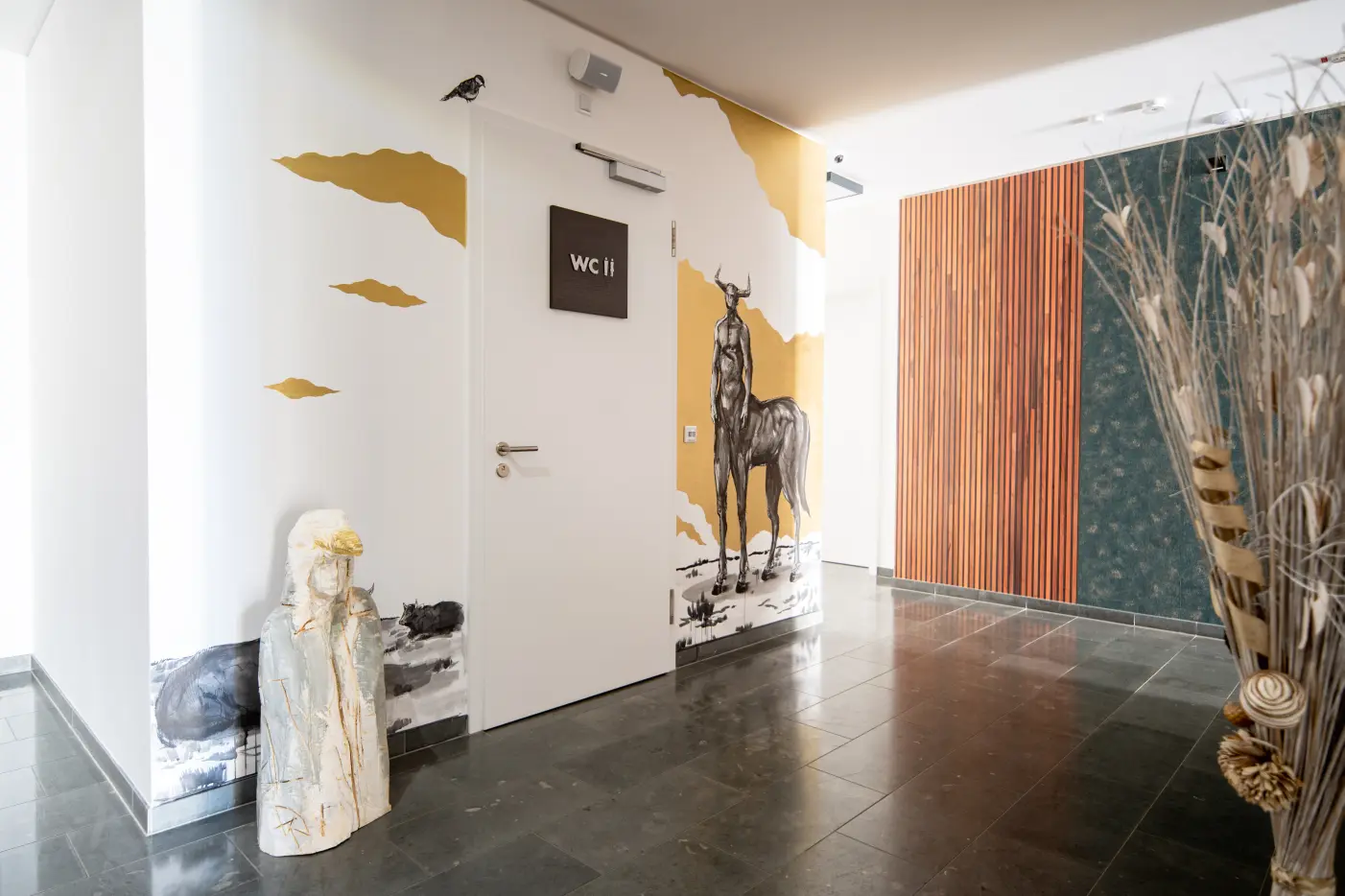The emergence of life on our planet inspired sculptor and painter Achim Ripperger to his artistic work in the We rooms Hotel. Always in relation to the human figure follow after roots and water (UG) rocks and minerals [EG] plants [1.0G), animals (2.0G) and finally the human being (3.0G), who with every new thought receives a new opportunity to shape itself and the world in a positive way.